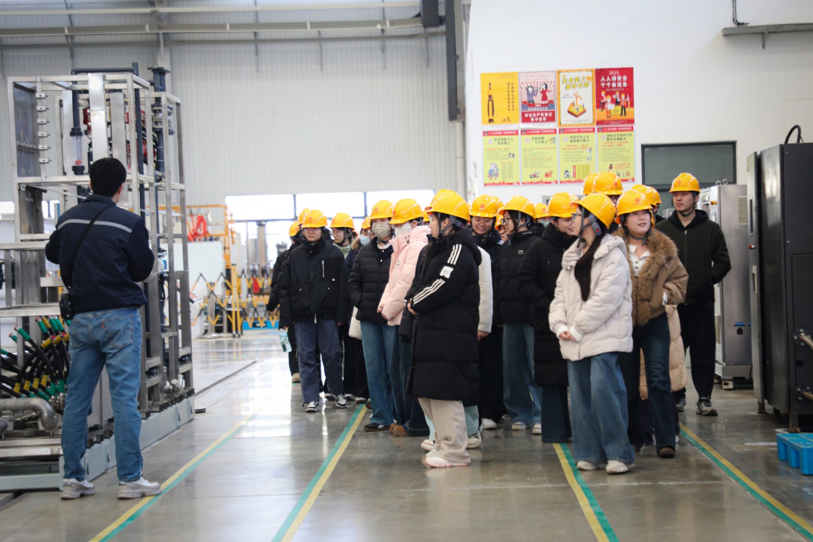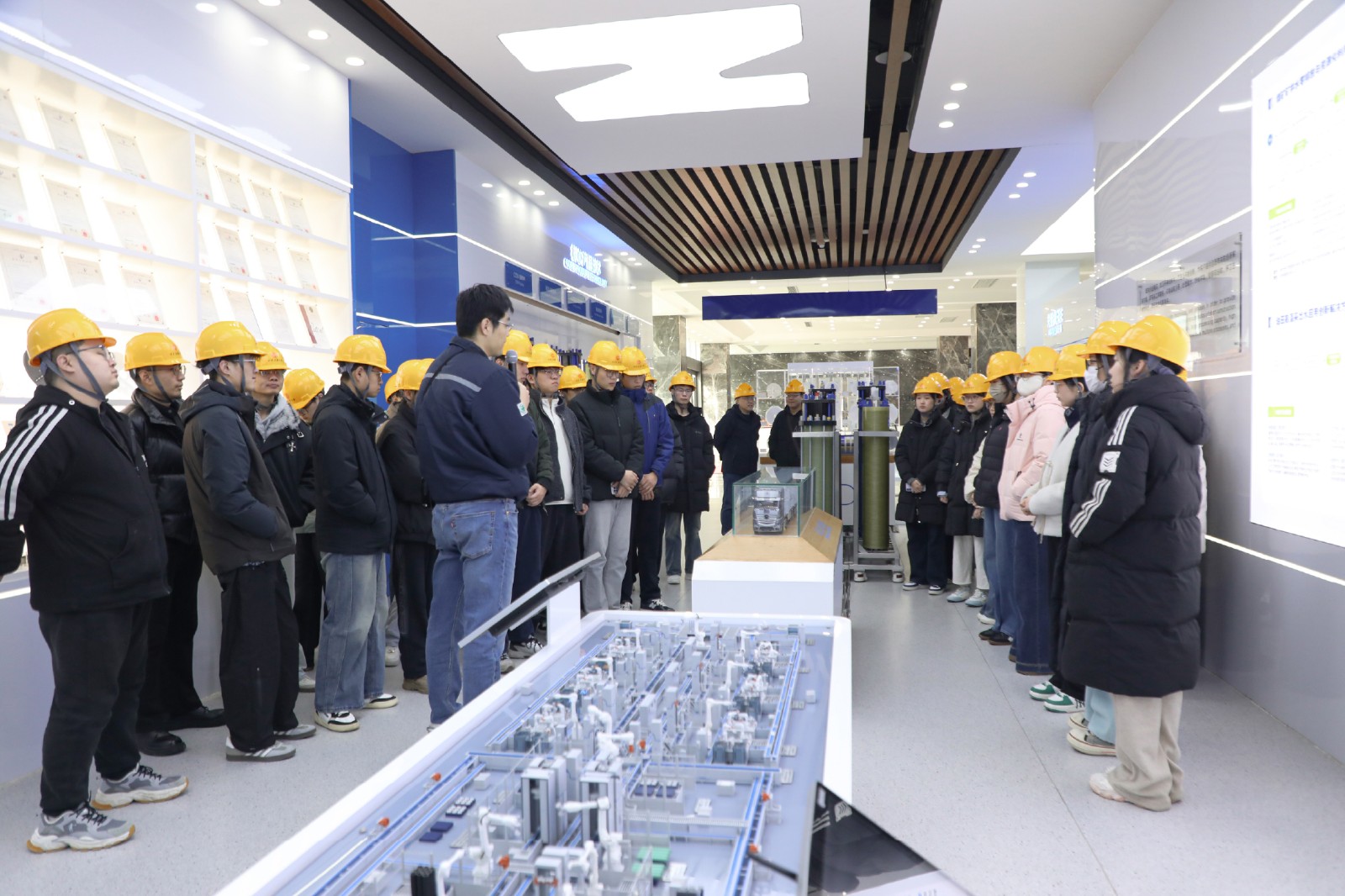 師生們先后走進(jìn)企業(yè)展廳、膜材料生產(chǎn)車間與設(shè)備智造車間,實(shí)地觀摩特種膜水處理設(shè)備全流程生產(chǎn)工藝及項(xiàng)目應(yīng)用成果。企業(yè)技術(shù)人員結(jié)合實(shí)際工程案例,將專業(yè)理論知識與產(chǎn)業(yè)實(shí)操相結(jié)合,細(xì)致解讀污廢水資源化處理核心技術(shù)原理與多元應(yīng)用場景,耐心解答師生提出的專業(yè)問題,讓同學(xué)們直觀感受環(huán)保技術(shù)在工程實(shí)際中的落地應(yīng)用,全方位了解行業(yè)前沿技術(shù)與產(chǎn)業(yè)發(fā)展態(tài)勢。